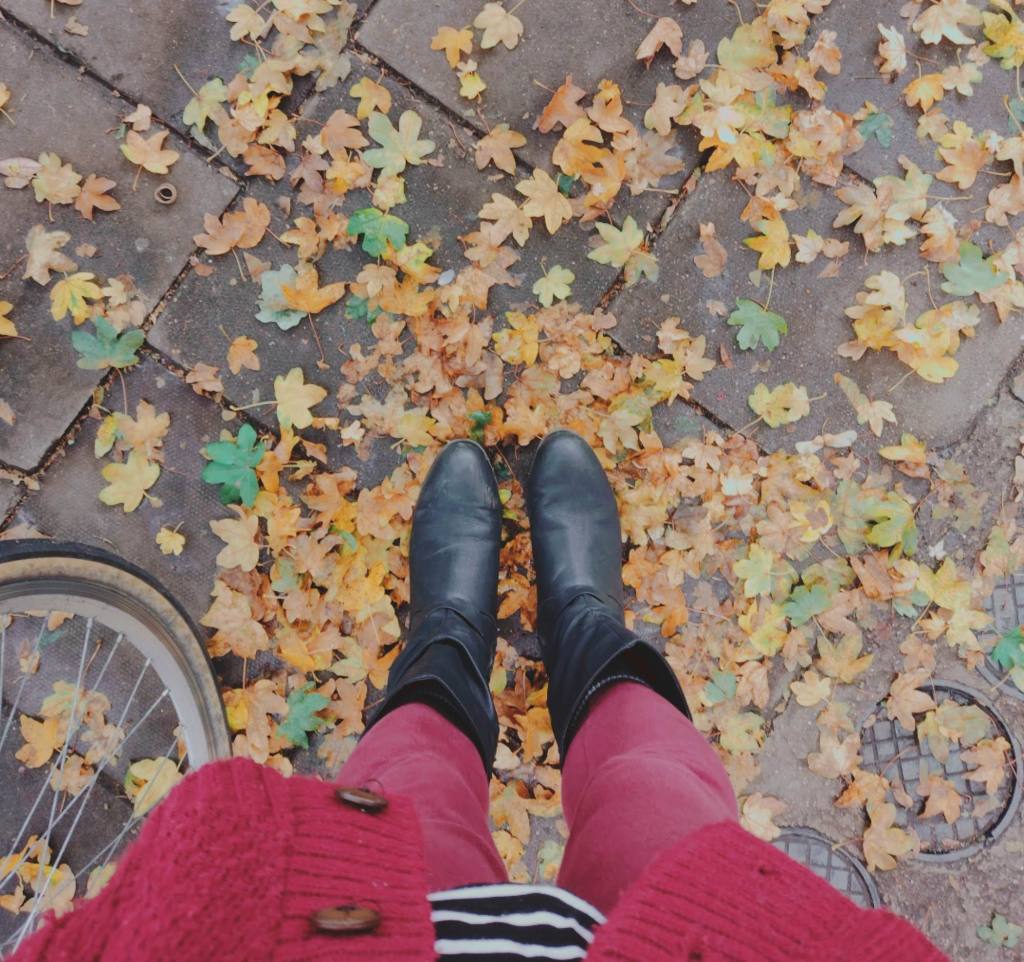 Probably simply walking outdoors and enjoying the fact that it’s sunny but cold, scarves abound, and leaves are underfoot.